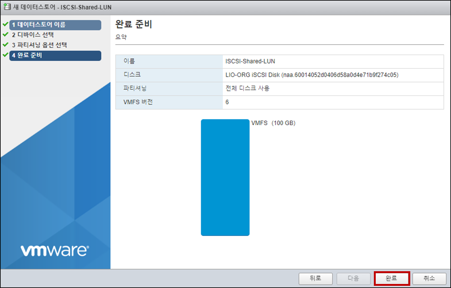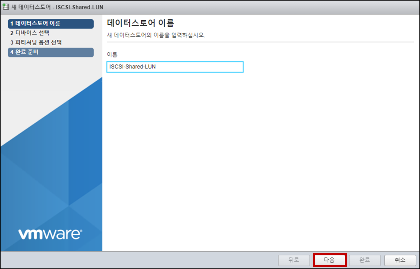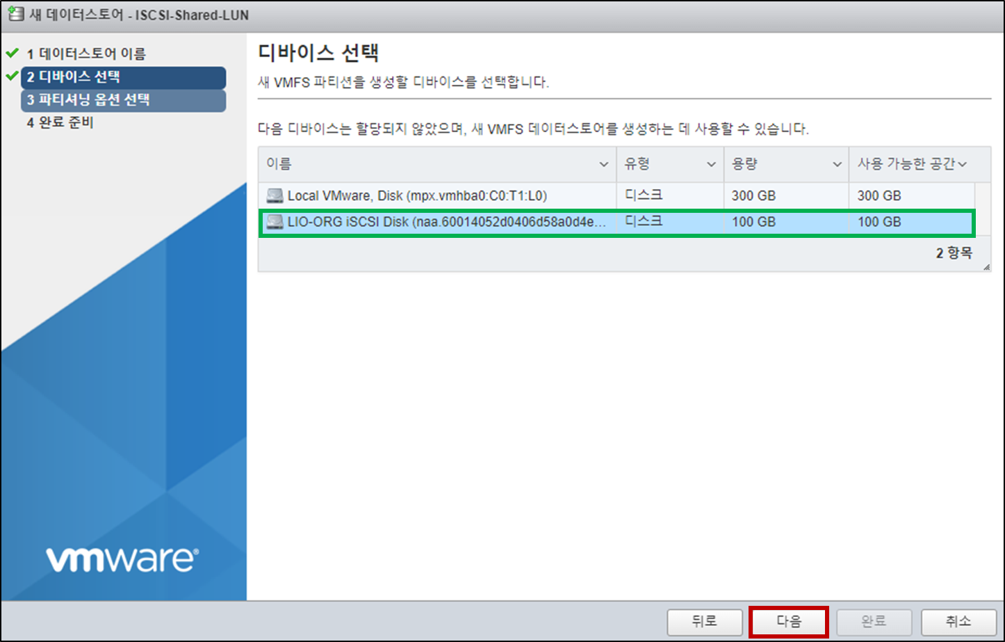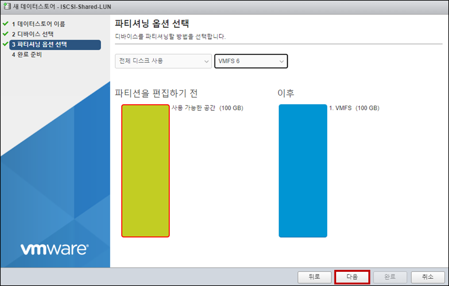 4) ISCSI 디스크 파티셔닝 옵션선택