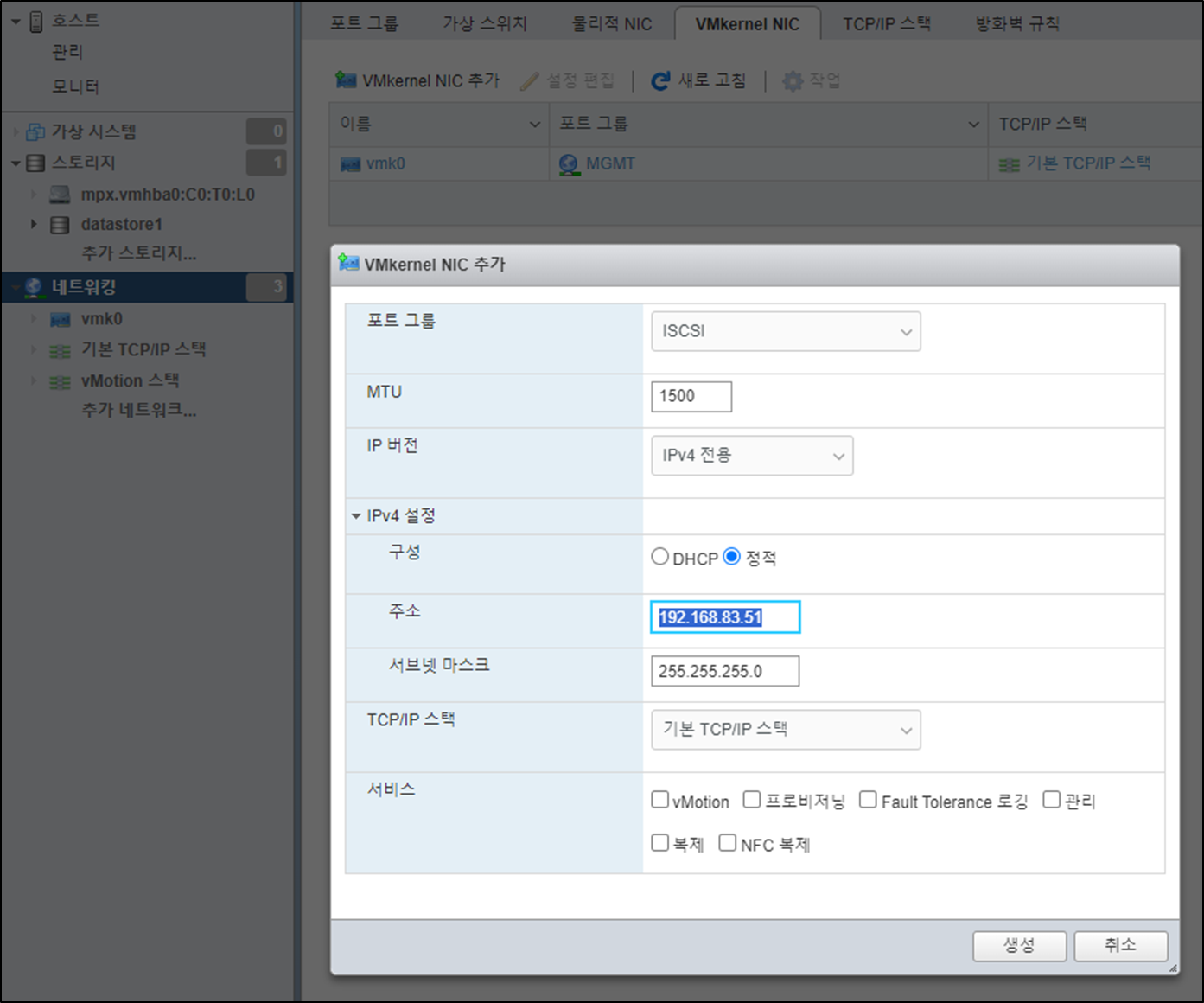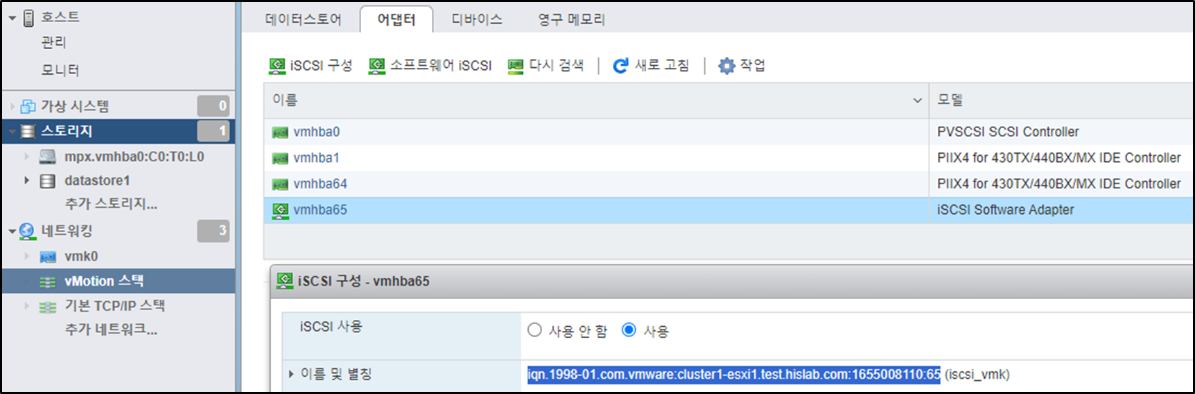 #1, ESXi 7.0 ISCSI 구성(ISCSI Configuration)