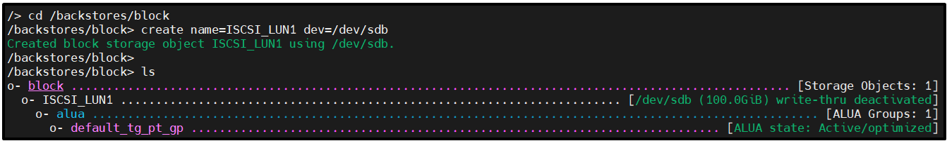 Backstores(LUN)를 생성한 IQN에 할당 및 접근제어.