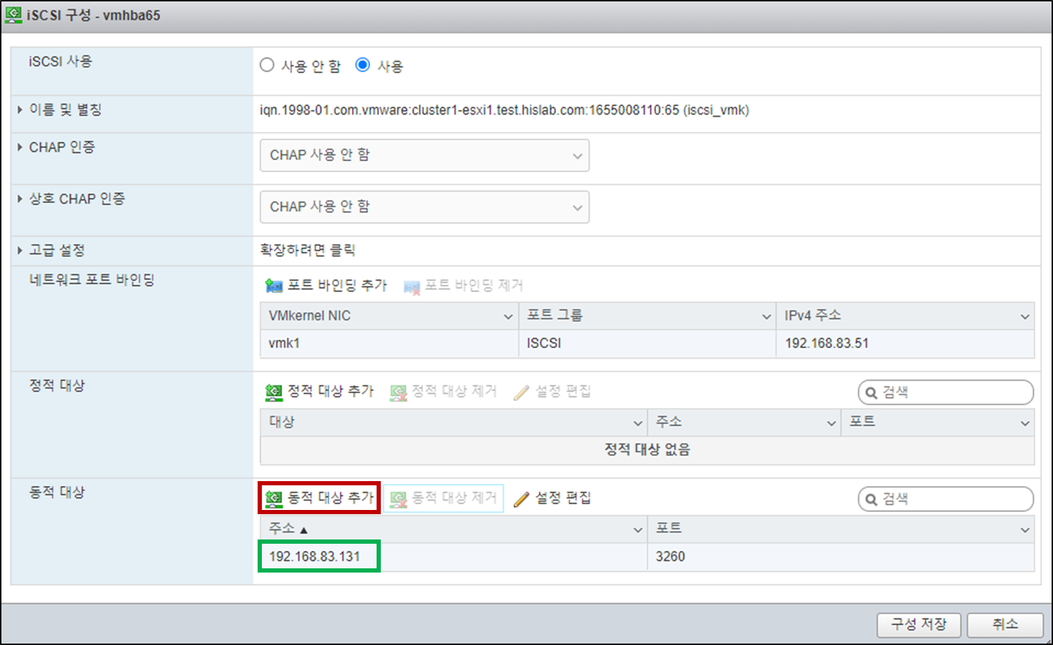 6. ESXi에서 ISCSI Client(Initiator) 구성